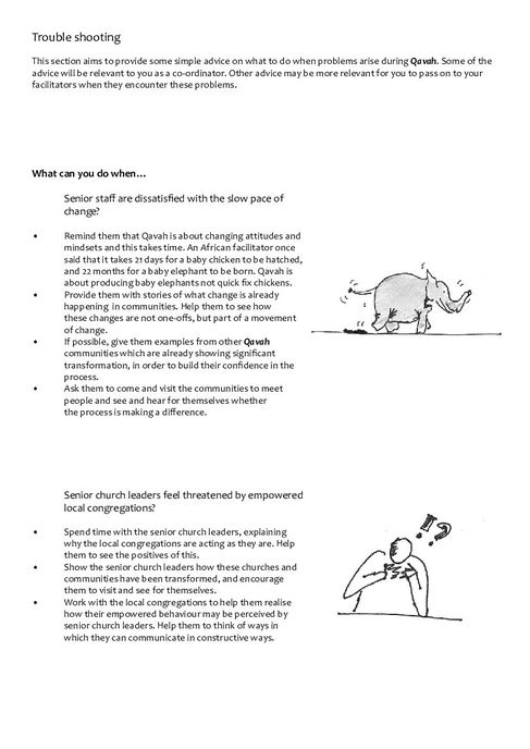 Qavah is a series of training materials created by Compassion International to empower communities and families to solve challenges utilizing resources at their disposal. Qavah is a Hebrew word which means ‘binding together, eagerly waiting, hoping for and expecting’. This term captures a sense of optimism and hope, along with the idea of working together, which is essential for positive, lasting change to take place. The purpose of this Briefing Paper is to provide practical advice on solving problems that may arise during Qavah.